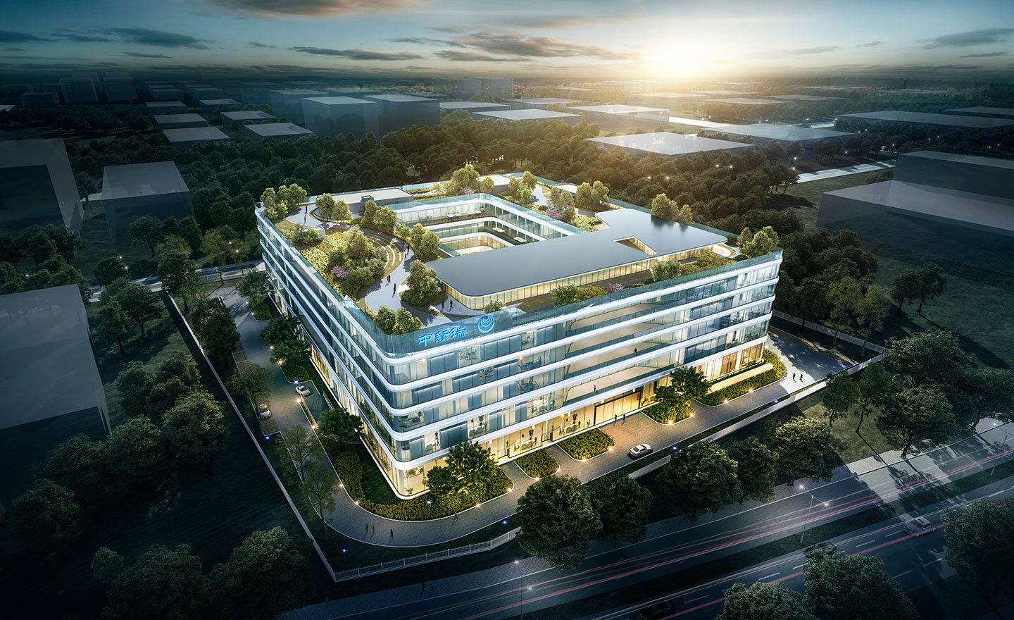 本項(xiàng)目的結(jié)構(gòu)類型為框架結(jié)構(gòu),將生產(chǎn)和研發(fā)辦公一體化設(shè)計(jì),加強(qiáng)了建筑的整體感。由于地塊道路限制,場地設(shè)置一個(gè)出入口,在場地南側(cè)。地塊內(nèi),圍繞建筑設(shè)置消防環(huán)道,在高層廠房西側(cè)和南側(cè)設(shè)置不連續(xù)消防登高場地。停車位沿消防環(huán)道設(shè)置,方便流線組織。