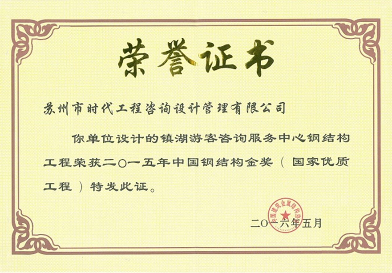 (2016-5-19) 企業動態--我司設計的《鎮湖游客咨詢服務中心鋼結構工程》項目獲評“中國鋼結構金獎”