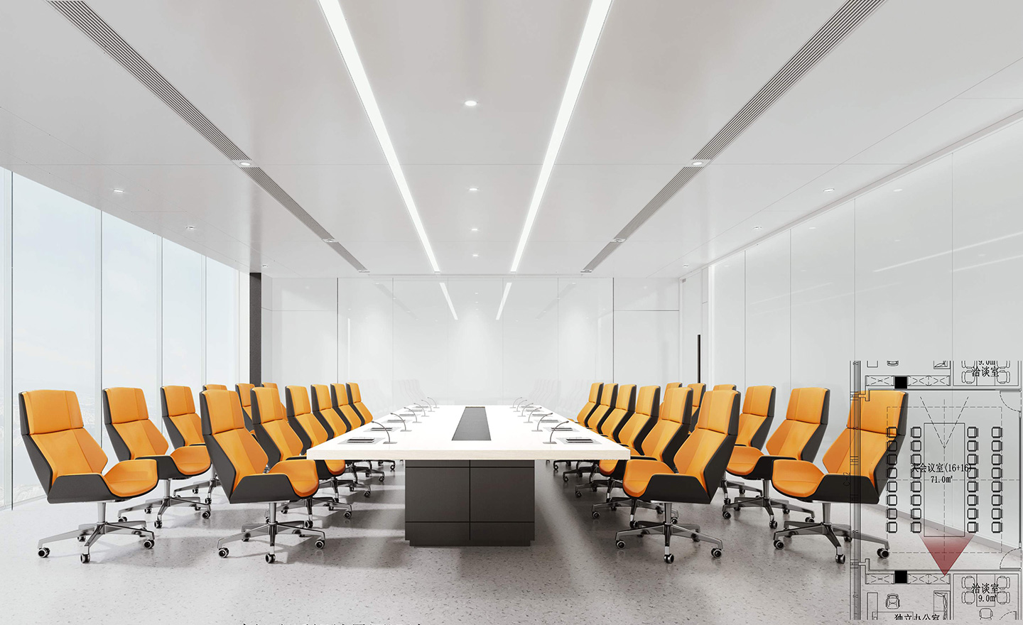 考慮直線的貫穿始末的特征。強調辦公空間的執行力,用極簡的手法表達出空間的序列的節奏感。