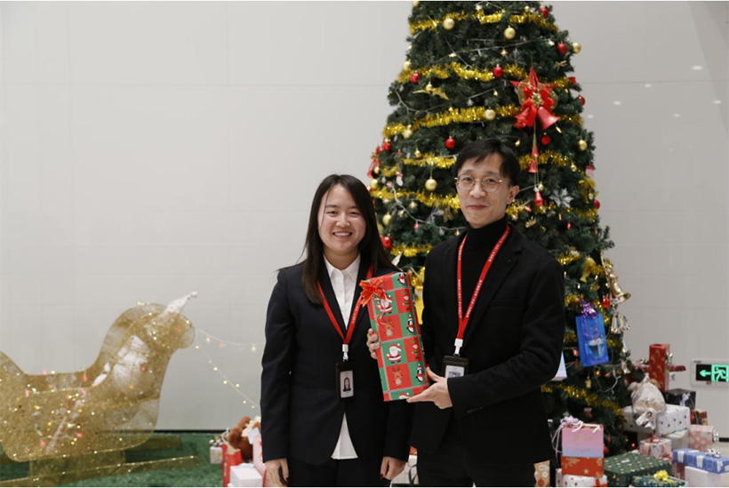 團(tuán)拜會(huì)后,我們舉行了因疫情而遲來(lái)的圣誕禮物互換活動(dòng)。活動(dòng)前,各位員工精心挑選了互贈(zèng)同事的禮物,既有衣服配飾,又有文創(chuàng)產(chǎn)品等等,這些禮物蘊(yùn)含了大家的溫暖關(guān)心和美好祝愿。在給禮物貼上抽獎(jiǎng)代號(hào)后,員工們?cè)跉g笑喜樂(lè)的氣氛中各自抽取禮物。禮物互換,傳遞的不僅僅是一份禮物,更是員工們之間深深的情意。大家紛紛許下美好的新年愿望,用相機(jī)手機(jī)拍下歡樂(lè)場(chǎng)景,留下美好回憶。