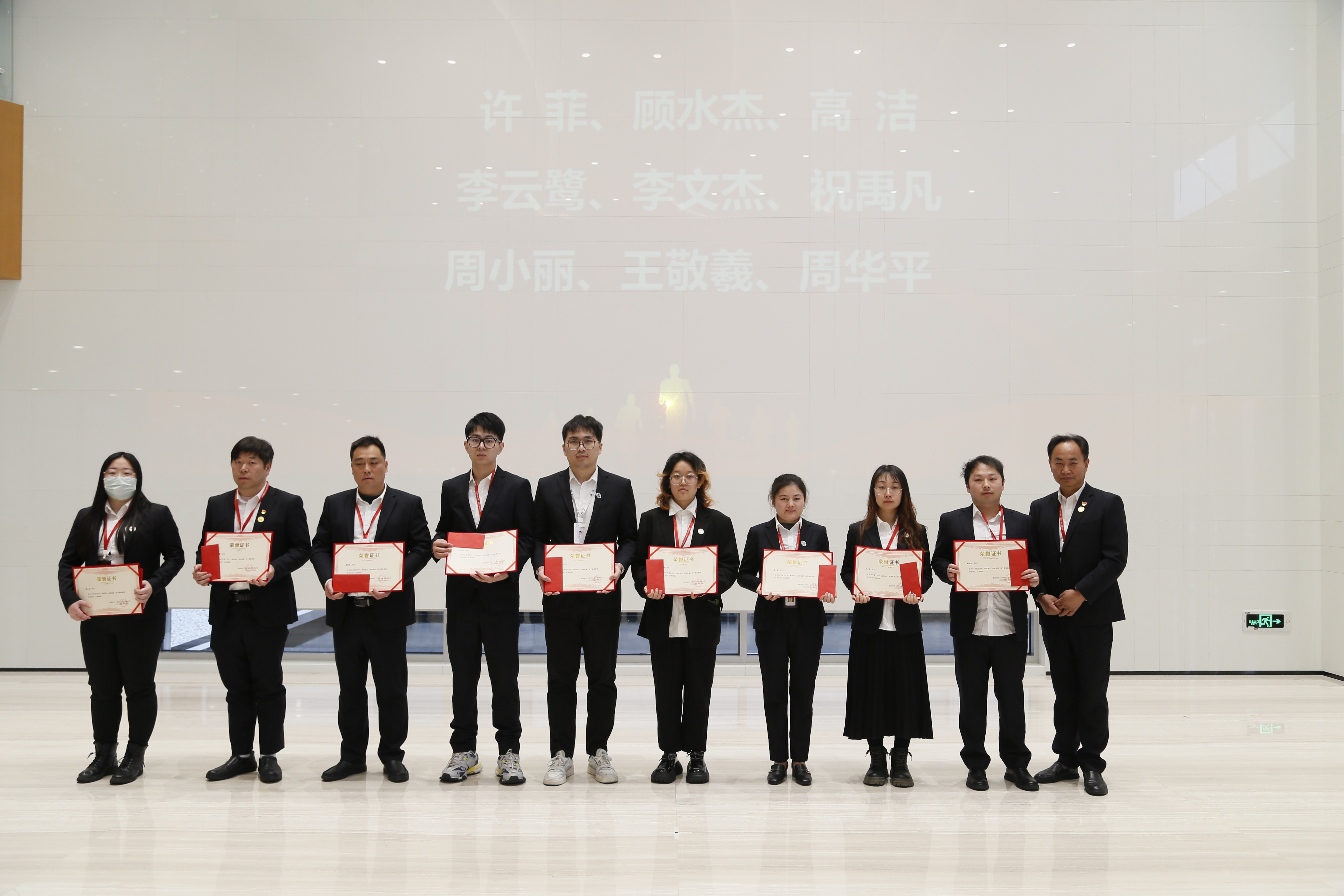 單達副總經理、張小穎總工程師、許星麗院長、周婷所長分別宣讀了2024年公司一號、二號、三號、四號表彰文件,并為先進集體和個人頒獎。老員工代表周婷、李武君、朱洪、陳志文,和新員工代表戴文、岳鑫分別上臺發表新年感言。