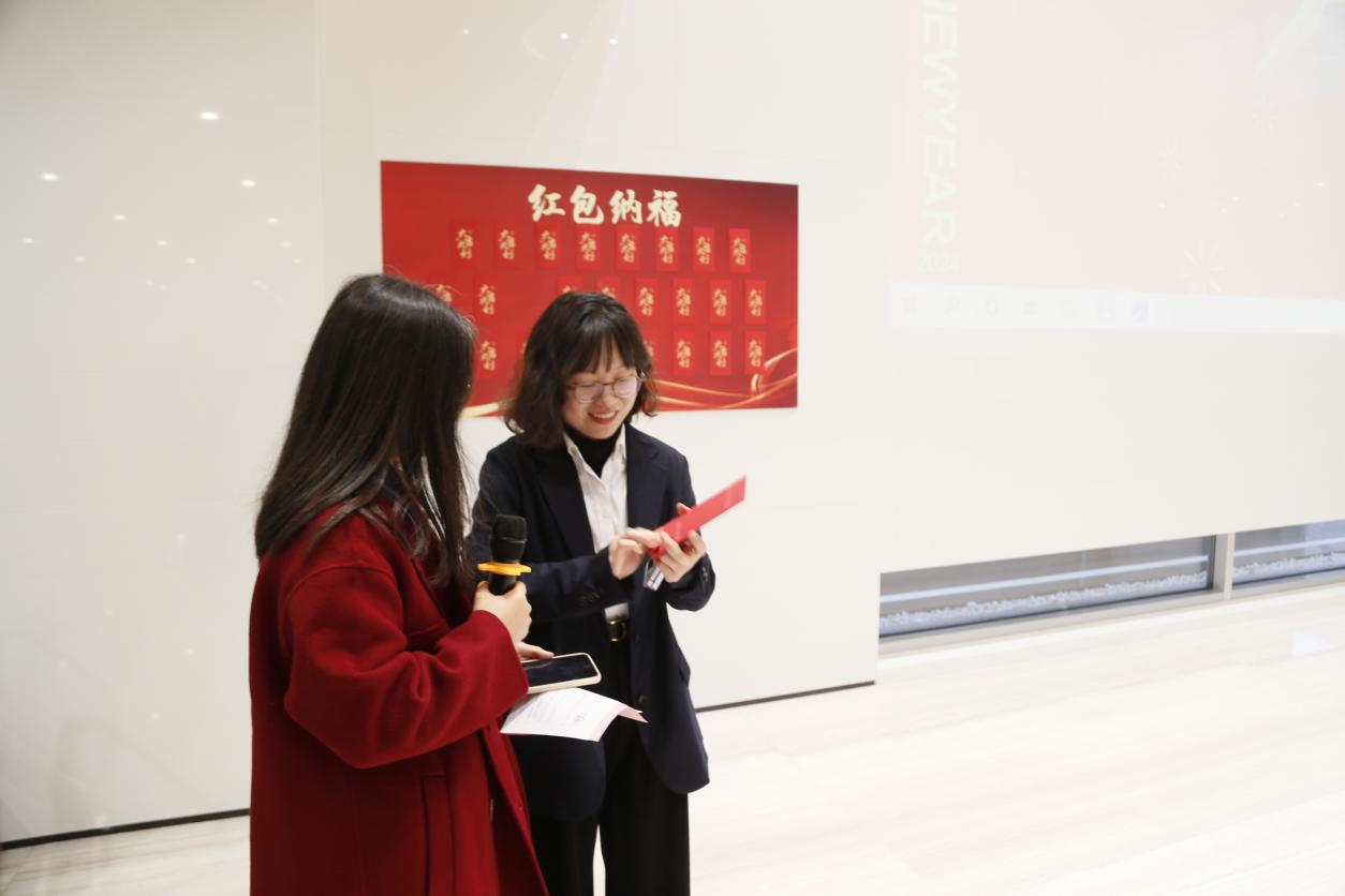 最后的抽獎環節將團拜會氣氛推向了高潮,拼手速,拼網速,拼手機,現場的員工們情緒高漲,手指緊張,唯恐漏了紅包,一聲開始,有搶到紅包的驚喜,有錯過紅包的遺憾,更多的是對下一個紅包的期待,紅包不斷,笑聲不停。